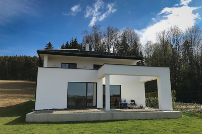 Durch eine sehr umfangreiche Ausstattung, wie die gesamte Lichtsteuerung, Beschattungsregelung, Einzelraumregelung und Raumbeschallung bietet das Haus von Familie F. smarten Wohnkomfort und erleichtert den Bewohnern den Alltag bei vielen Abläufen.