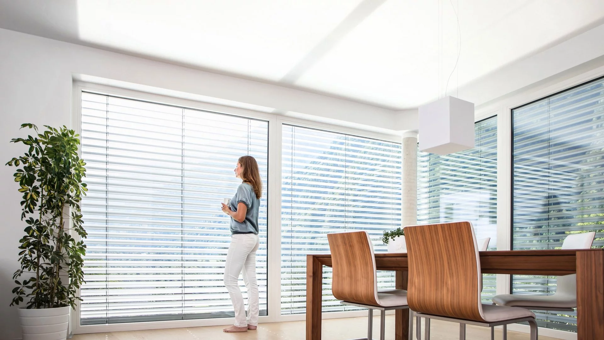 Dieses besondere Element steuert die Lamellen so präzise, dass sie in jeder Position die ideale Tageslichteinstrahlung auf die Decke lenkt, ohne dabei geblendet zu werden. Natürlich bietet das Modul auch den Betrieb von Standard-Beschattungselementen wie Rollladen oder Raffstore an.
